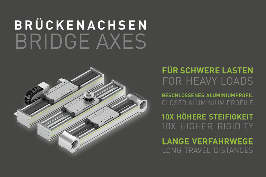 Wie all unsere Linearachsen, lassen sich auch die neuen Brückenachsen und Auslegerachsen hier individuell konfigurieren.