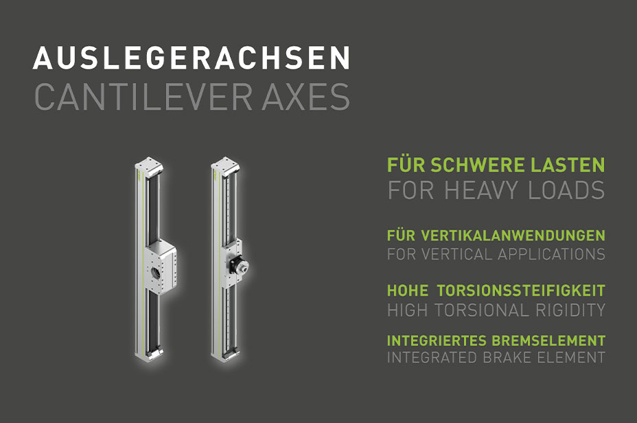 Auch die Auslegerachsen überzeugen: Durch die hohe Steifigkeit des Auslegers und der gering bewegten Masse sind die Linearachsen vor allem für dynamische Applikationen mit hohen Lasten bei Vertikalanwendungen geeignet. Durch das geschlossene Aluminiumprofil besitzt der Ausleger trotz seines geringen Gewichts eine hohe Torsionssteifigkeit.