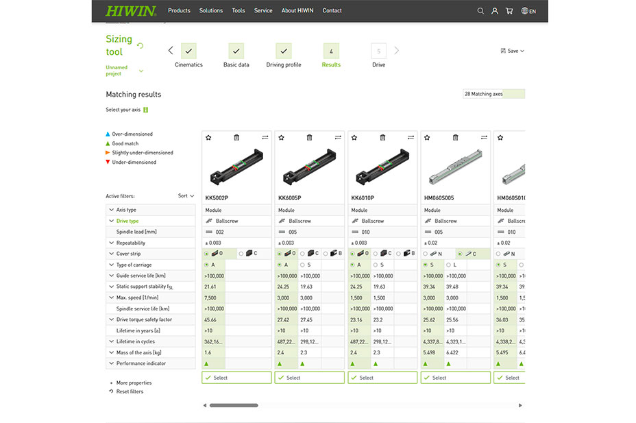 It sounds simple and it is simple: based on the application data entered, the tool determines suitable axes, which are compared with each other and displayed in a pre-selected form. “We are continuously expanding and refining our tools to give our customers the fastest and easiest access to motion technology,” says Werner Mäurer, HIWIN Managing Director.